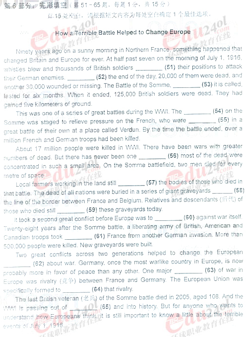 - 職稱英語真題及答案衛生C補全短文2017-06-29