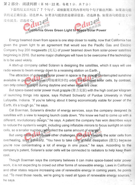 - 職稱英語綜合C閱讀判斷真題及答案2017-07-03