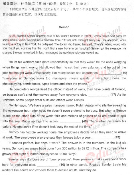 當前位置: 首頁 > 職稱英語 > 職稱英語歷年試題 > 2010年職稱英語真題之理工類B級補全短文