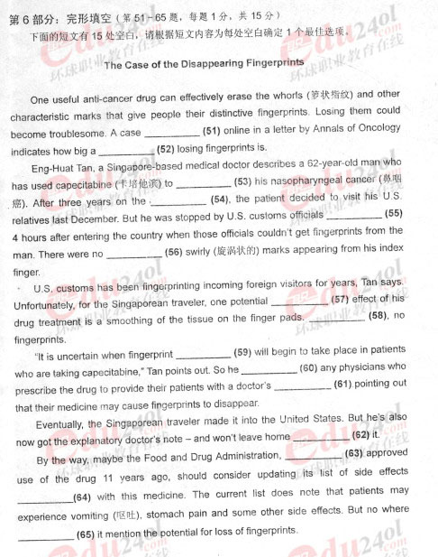 當前位置: 首頁 > 職稱英語 > 職稱英語歷年試題 > 2010年職稱英語真題之理工類B級完形填空