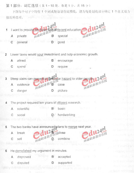 當前位置: 首頁 > 職稱英語 > 職稱英語歷年試題 > 2010年職稱英語真題之衛生類A級詞匯選項