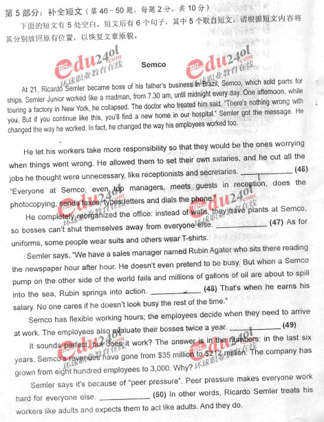 - 職稱英語綜合C概括大意與完成句子真題及答案2017-07-03