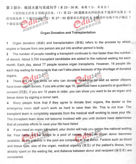 - 職稱英語真題及答案衛生C補全短文2017-06-29
