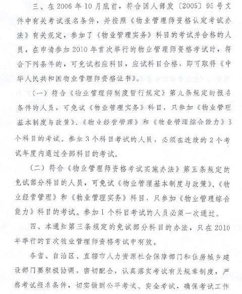(三)取得經濟學、管理科學與工程或土建類大學本科學歷,工作滿4年,其中從事物業管理工作滿3年。