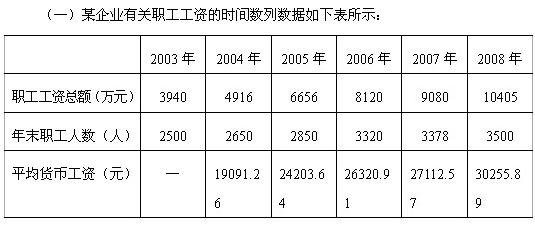 (一)某企業有關職工工資的時間數列數據如下表所示: