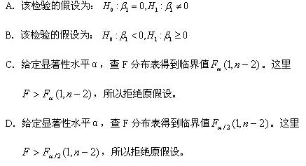 80.對該企業的工資總額趨勢模型進行檢驗,得到方差分析計算結果F=634.65,則以下正確的是( )。