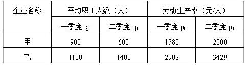 (二)現有甲乙兩企業的勞動生產率和平均職工人數資料如下表所示: