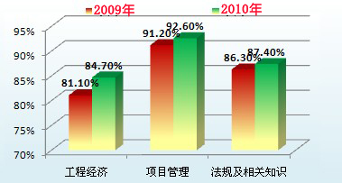 2010年一級建造師考試輔導單科通過率(如下圖所示):