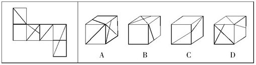 83.左邊給定的是紙盒的外表面,下面哪一項(xiàng)能由它折疊而成?