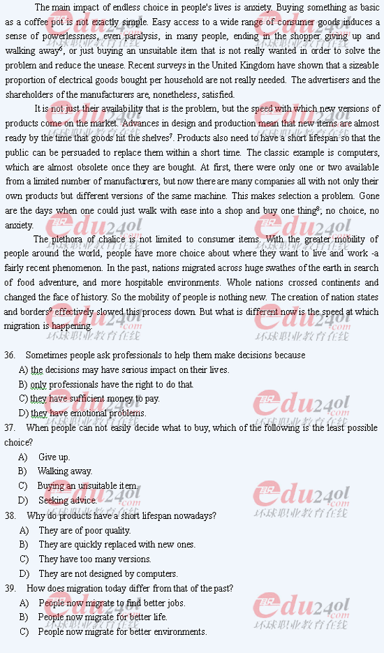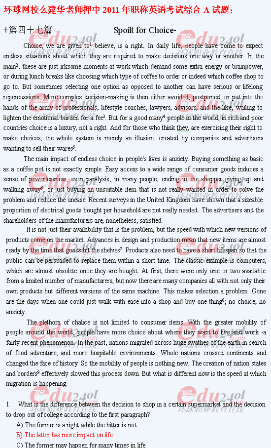 - 職稱英語理工類閱讀理解練習七2017-06-12