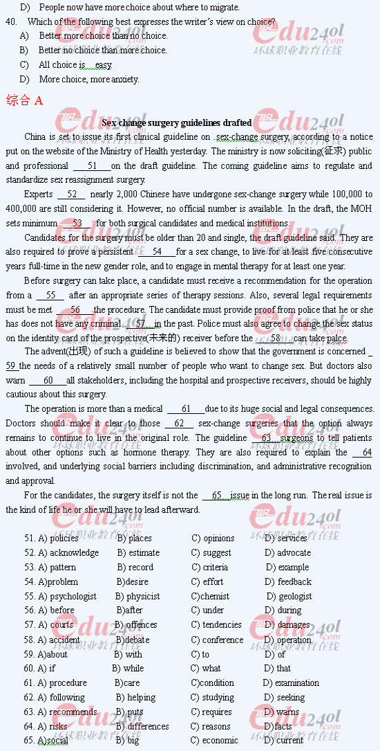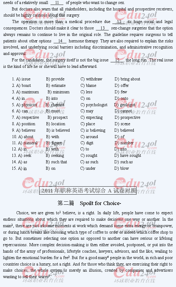 - 重慶2017年職稱英語綜合類考試考前沖刺練習完形填空2017-09-08