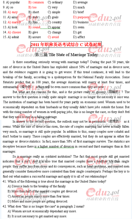 當前位置: 首頁 > 職稱英語 > 職稱英語模擬試題 > 環球網校2011年綜合C押中試題與試卷對照