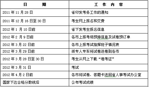 一、考試時間。考試定于2012年4月7日舉行。具體考試時間為:上午 9:00-11:00。