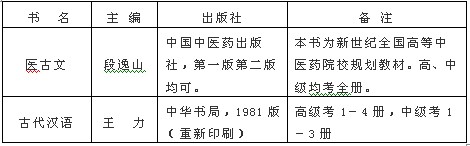 我省自行組織命題的醫(yī)古文、古漢語考試教材版本為: