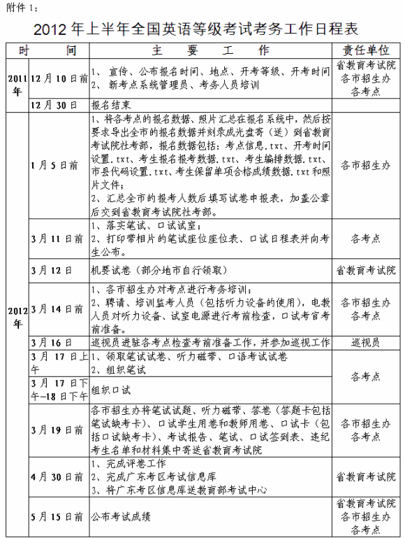 以上考試的報名時間為本通知發出之日起至2011年12月30日。各市招生考試部門應組織轄區內的考點嚴格按照報名程序,開展考試報名工作。