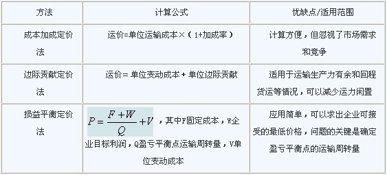 運價=貨物價值×承受能力系數,其中貨物價值是指貨物的市場價格,承受能力系數是通過市場調研得到的。