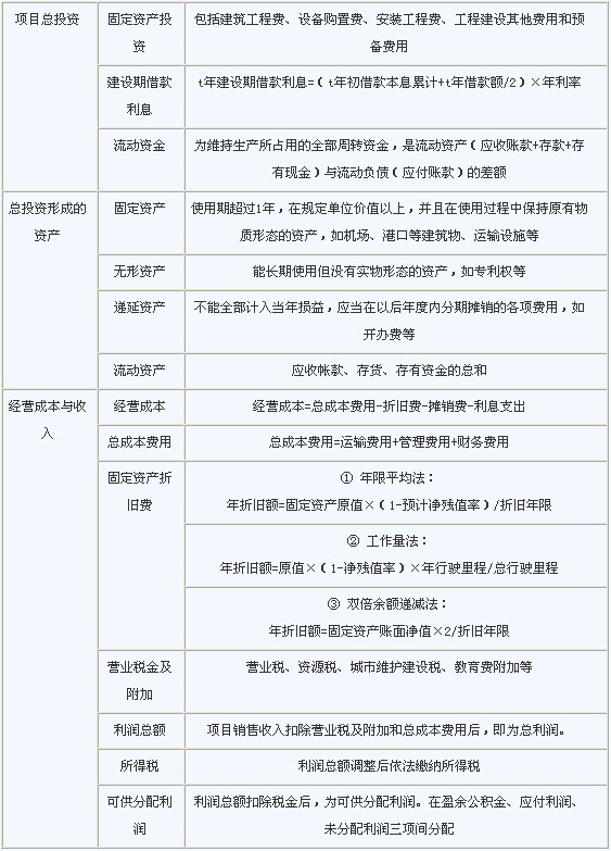 3.財務(wù)評價中收入與費(fèi)用的項(xiàng)目與計(jì)算