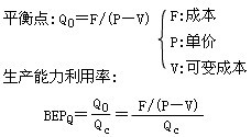定義:盈虧平衡分析是研究項目投產后產量、成本、銷售收入變化對盈虧的影響的分析方法,關鍵是求出盈虧平衡點BEP,然后用該點分析項目承受經營風險的能力。