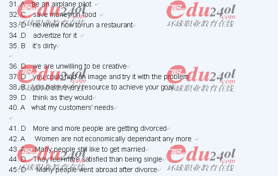 2011年職稱英語考試試題答案--綜合類C級(代碼32)