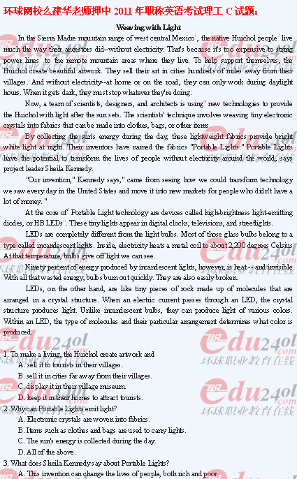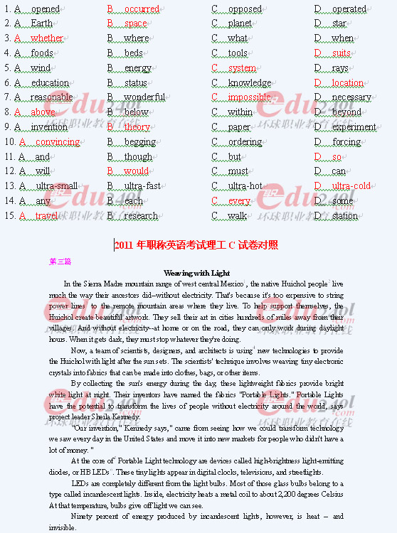 環球網校預祝大家都能順利通過2011年職稱英語考試!