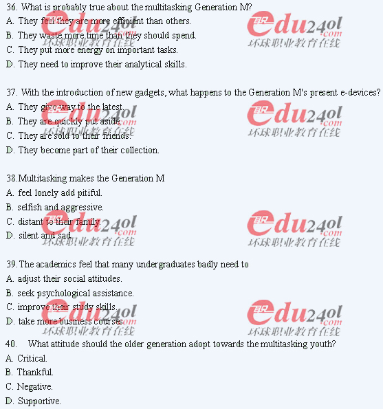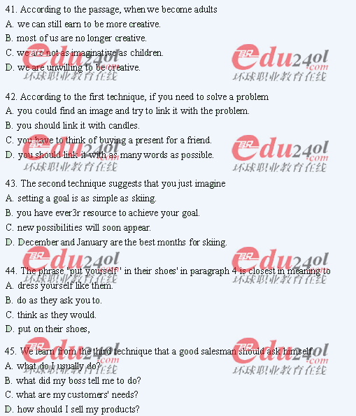 環球網校(9duwan.com)整理,為了廣大考生及時的了解2011年職稱英語考試情況,網校整理了2011年職稱英語考試真題之綜合類B級考試真題。