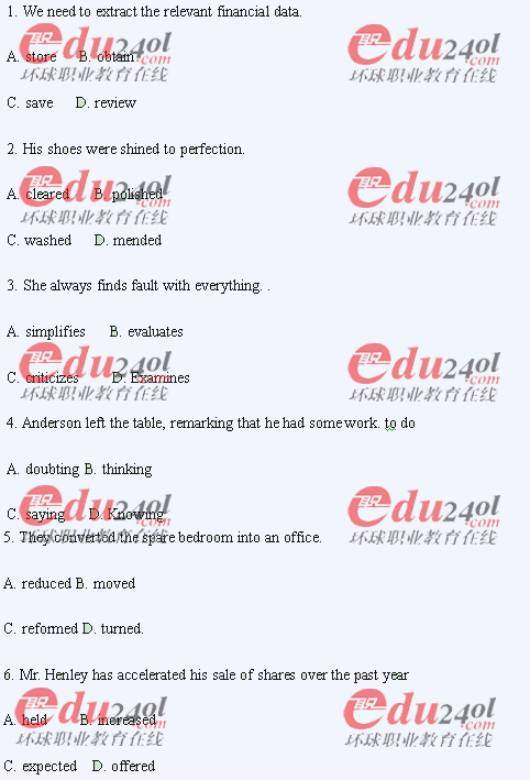 下面每個句子中均有1個詞或短語劃有底橫線,請為每處劃線部分確定1個意義最為接近的選項。
