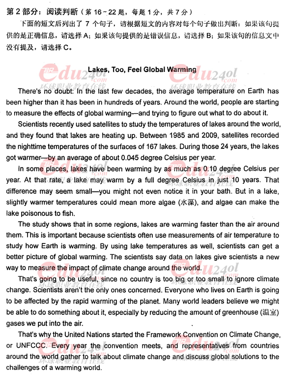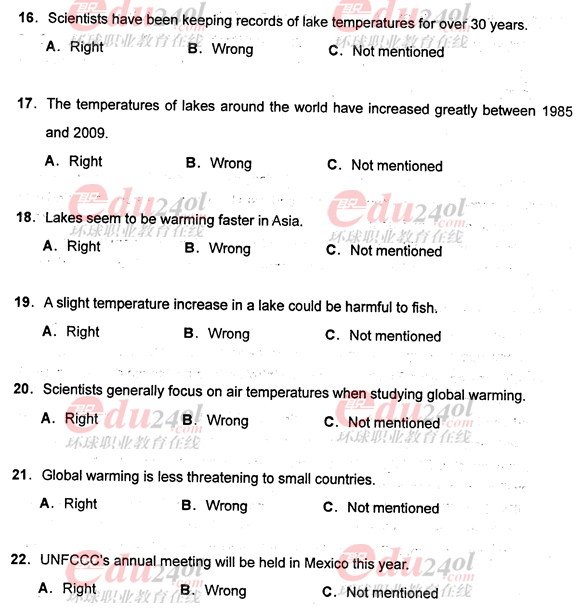 - 職稱英語綜合C閱讀判斷真題及答案2017-07-03