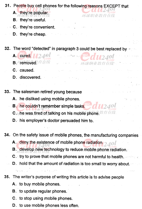 環球網校(9duwan.com)整理,為了廣大考生及時的了解2011年職稱英語考試情況,網校整理了2011年職稱英語考試真題之理工類B級考試真題。