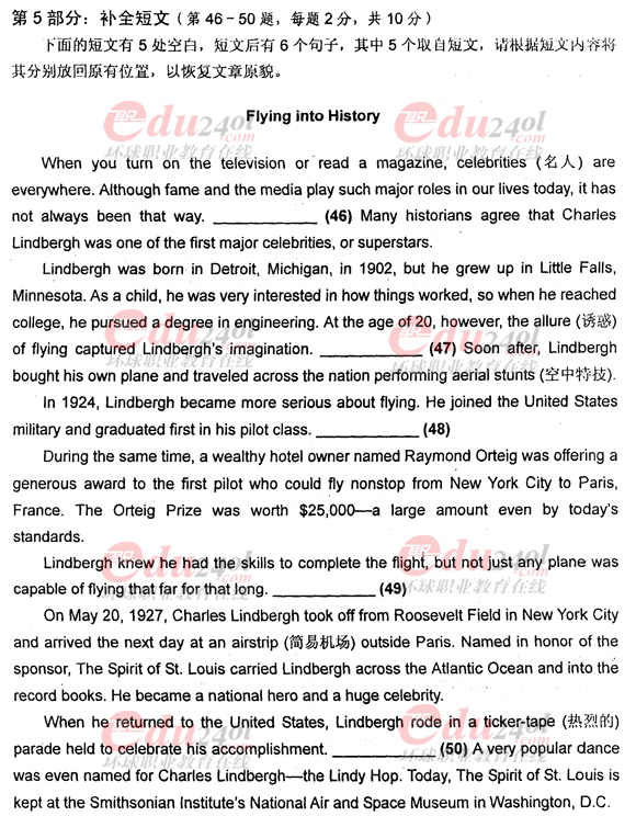 - 職稱英語真題及答案衛生C補全短文2017-06-29