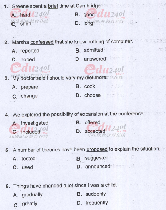- 職稱英語綜合C概括大意與完成句子真題及答案2017-07-03