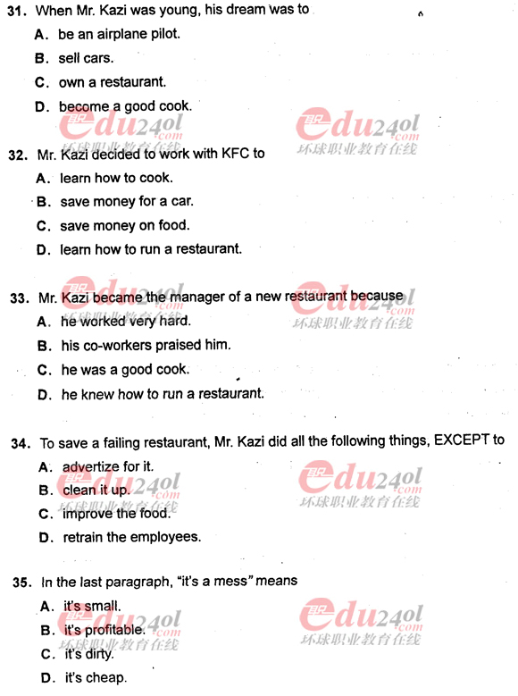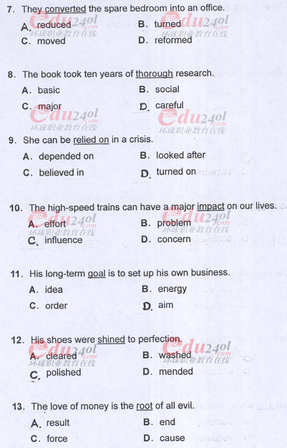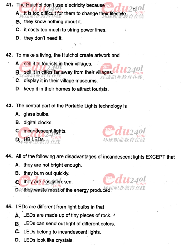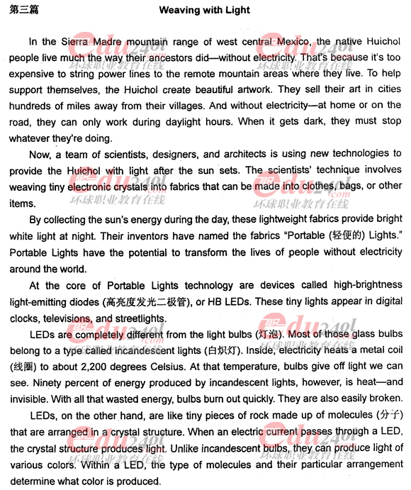 環球網校(9duwan.com)整理,為了廣大考生及時的了解2011年職稱英語考試情況,網校整理了2011年職稱英語考試真題之理工類C級考試真題。