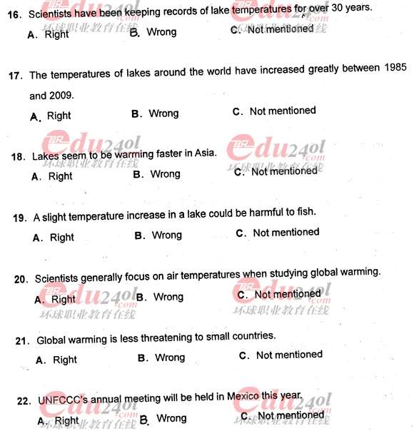 - 職稱英語綜合C閱讀判斷真題及答案2017-07-03