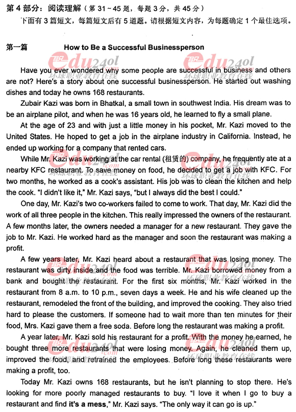 - 職稱英語真題綜合類B級閱讀理解真題講解2017-04-27