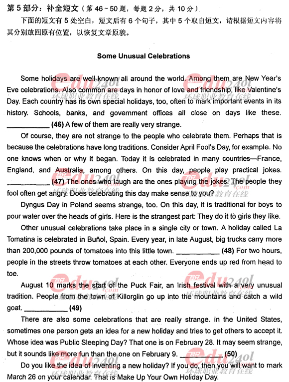 - 職稱英語真題及答案衛生C補全短文2017-06-29