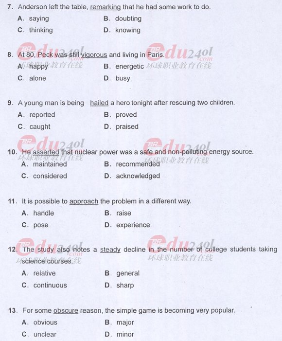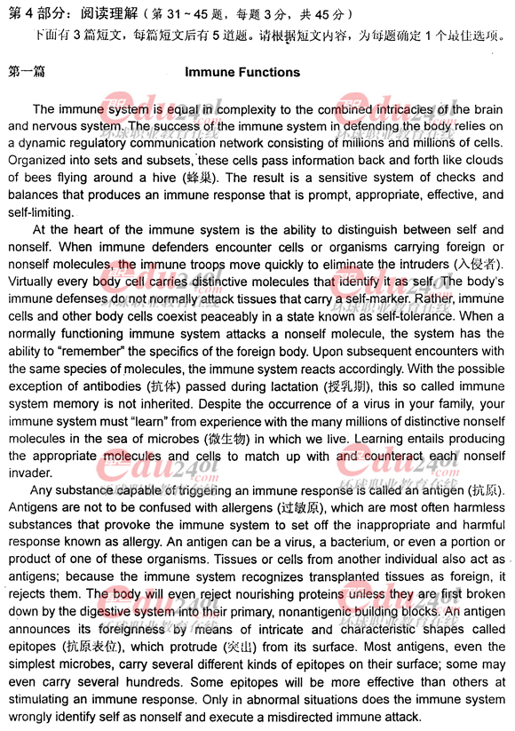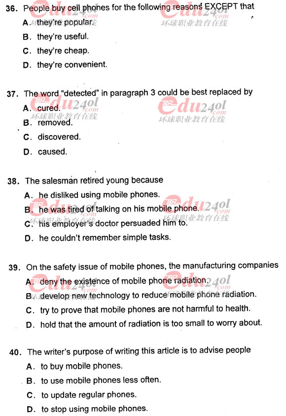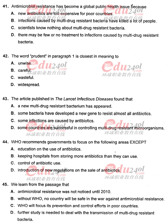 環球網校(9duwan.com)整理,為了廣大考生及時的了解2011年職稱英語考試情況,網校整理了2011年職稱英語考試真題之衛生類A級考試真題。
