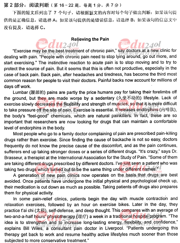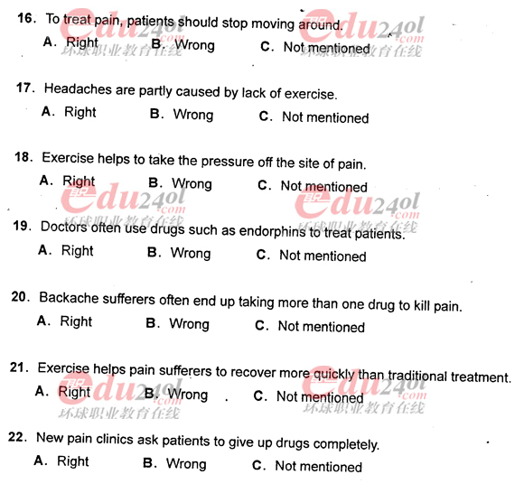- 職稱英語真題《衛生類b級》閱讀判斷練習2017-06-29