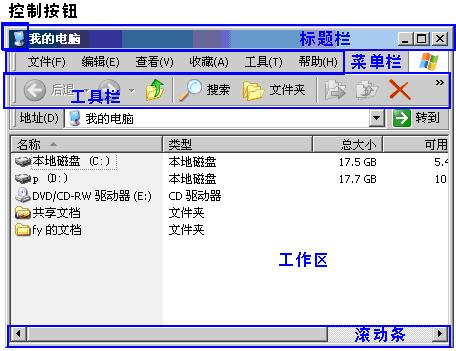 (1)窗口的組成:以“我的電腦”窗口為例。