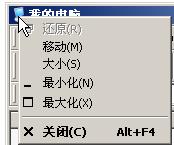 控制按鈕位于窗口的左上角。用鼠標單擊控制按鈕,在窗口上出現控制菜單。