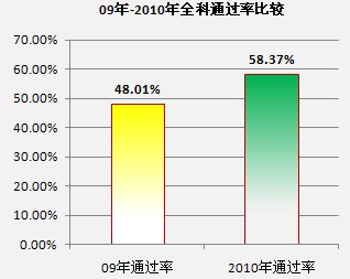 環球網校是國內最早開通招標師網上輔導的培訓機構。網校科學的課程設置和精良的師資隊伍贏得了考生的廣泛好評。輔導通過率增長也見證了環球網校招標師輔導的絕對權威品牌,是考生備考的首選輔導。以下是2009至2010年的通過率比較: