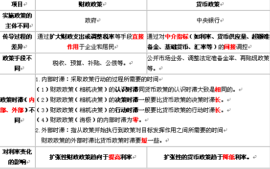 ★ 考點(diǎn)六 財(cái)政政策與貨幣政策的功能差異(熟悉)