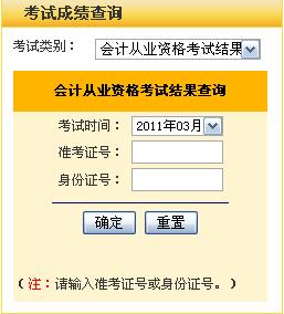 山東2011年會計從業資格考試成績查詢