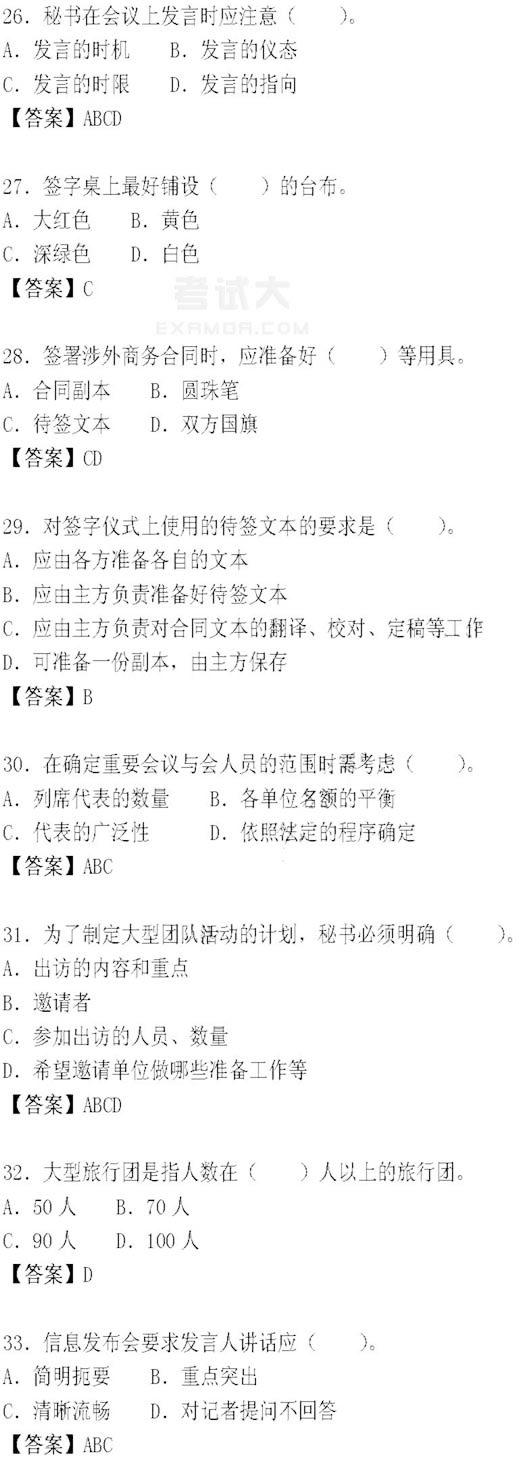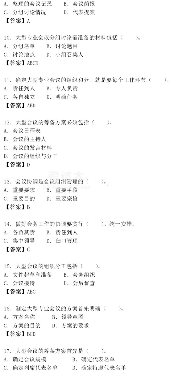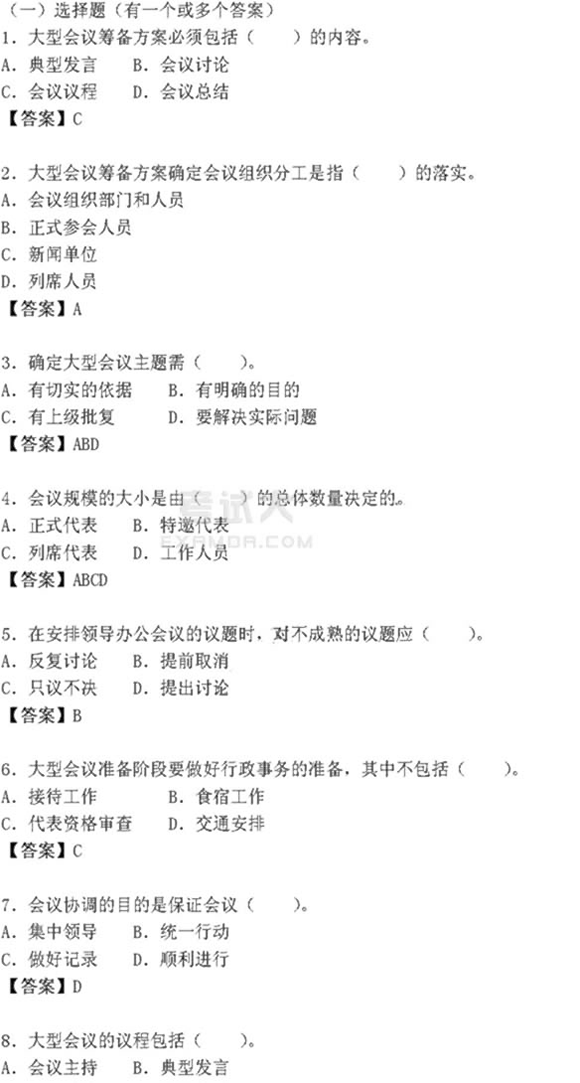 - 2016年秘書資格會務和商務活動多項選擇題2016-07-22