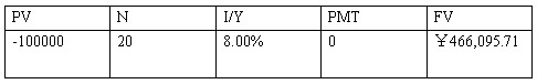 pv=0 n=8*12 r=6%/12 Fv=531883.96 求得pmt=4308.75 注意是月初投入資金,不是默認的方式,使用理財計算器時先設置。如果是月末,得到的是4330.30