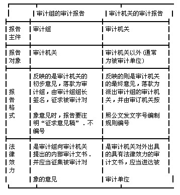 我國國家審計的審計報告是審計機關實施審計后,對被審計單位的財政收支、財務收支的真實、合法、效益發表審計意見的書面文件。包括審計組的審計報告和審計機關的審計報告兩種。二者的區別如下
