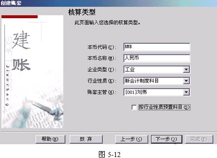 5.行業性質:系統按照所選擇的行業性質預置科目,必須選擇輸入。