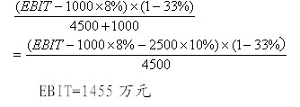 (1) 計算兩種籌資方案下每股收益無差別點的息稅前利潤。