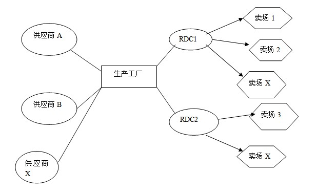 公司為我國某電腦生產商。其生產所需的硅芯片、電路板、電阻電容、機箱鋼板等零部件、原材料提供商分布在青島、成都、武漢等諸多城市。每周L綜合計劃部集合臺式機、筆記本等各產品主生產計劃及各種零部件、原料的各種物料需求計劃,采購部接受物料需求計劃后,向相關供應商下達訂單,進行集中采購。個供應商交貨以后,由某綜合物流服務提夠商D公司負責將各種部件、原料由產地運送至L位于甚至好的生產工廠。工廠將各種零部件、原料經過加工形成電腦通用標準部件之后,運送至公司兩個自由區域分銷中心RDC1、RDC2。分銷中心根據各賣場下達的訂單進行組裝,并進行配送至賣場交付給顧客。