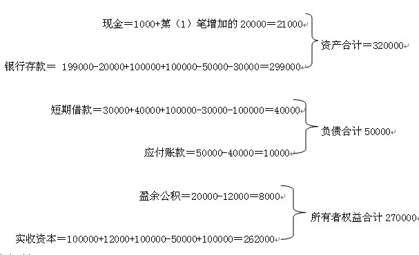 第一種情況的8種業務完成后,會計等式的恒等關系依然存在。會計要素和余額如表: