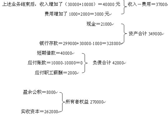 資產349000=負債42000+所有者權益270000+收入40000-費用3000