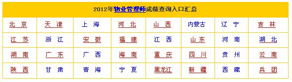 2012年物業管理師考試成績查詢現已開始,目前已逾十個地區開通網上查詢入口。環球網校物業管理師頻道正隨時關注最新動態,保證第一時間開通查詢通道,以方便廣大考生朋友們查詢成績。